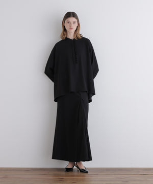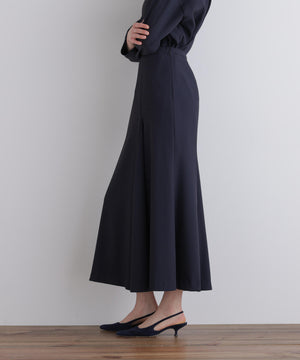 構築的な美しさと柔らかな動きが共存する、ハイウエストロングスカート。LE PHIL定番の2WAYダブルクロス素材を使用し、しなやかな落ち感と程よいハリが、縦のラインを美しく際立たせます。フロントにはマチを施し、歩くたびに自然なドレープが生まれるよう設計されたディテールが、静かな存在感を放ちます。単調になりがちなミニマムな着こなしのさりげないアクセントに。