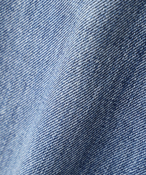 ムラ糸を織り交ぜることにより加工を施すと中白染めのデニム生地に表情が生まれカジュアル感を出しています。