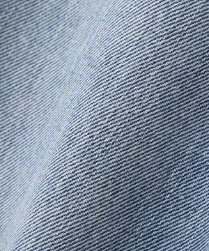 ブルー加工は定番的な中色へ色を落としたストーンウォッシュ加工、ライトブルー加工は色を落としたデニムの表面に、薬品でさらに拭き上げる事でベースにあるデニム色目+表面の白っぽさが陰影のあるトーンを表現しています。