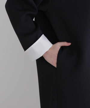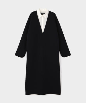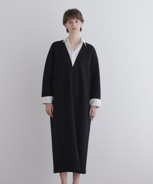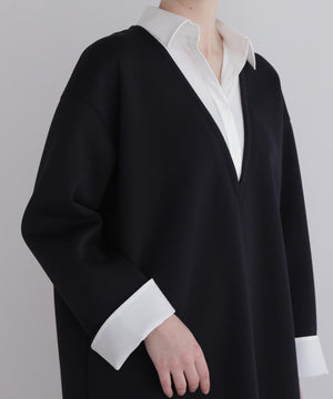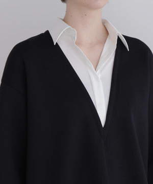 一枚で着映えする存在感がありながらも、レイヤード風のデザインがスタイリングの幅を広げ、モードで知的な印象に仕上がります。