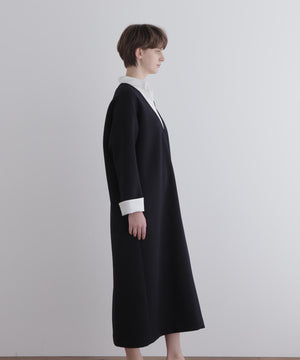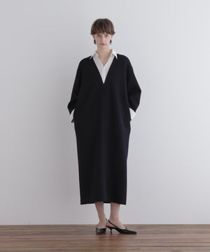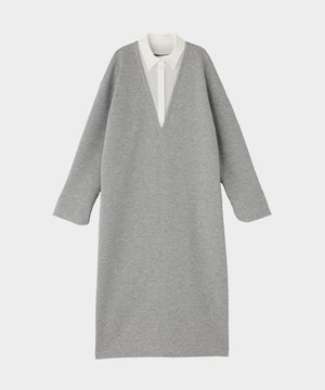 シャツをレイヤードしているかのような視覚的な遊び心が効いた、ドッキングデザインのワンピース。