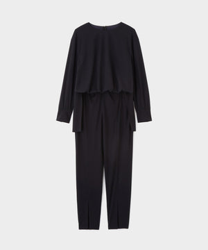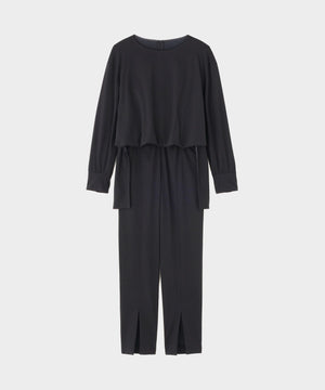 ブランド定番のコンパクトポンチ素材を使用した、きれいめな表情と快適な着心地を兼ね備えたオールインワン。