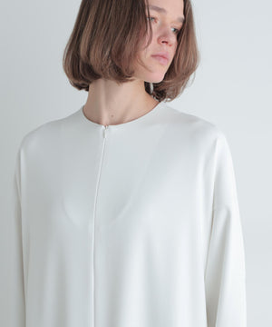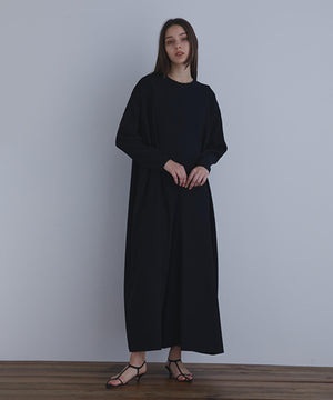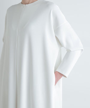 程よい厚みで身体のラインを拾いづらく、ジャージーのようなソフトな肌触りとストレッチ性が特徴の二重織素材です。