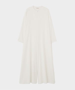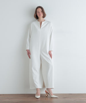 生地を贅沢に使い、体に沿う流れるようなドレープはインパクトがありながら、どの角度から見てもミニマルで美しい。シンプルにドラマティックなオールインワンです。