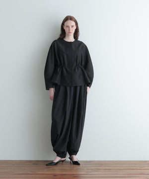 ウエストのドローコードでシルエットを自在に調整でき、フェミニンにもモードにもアレンジ可能。