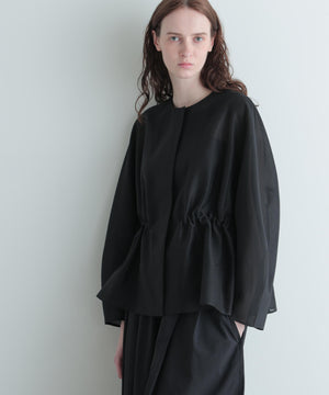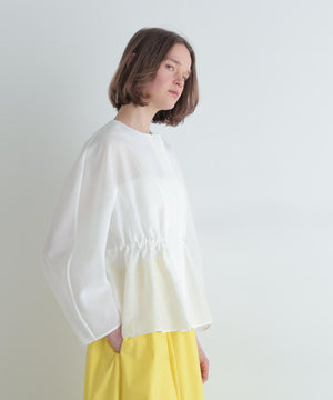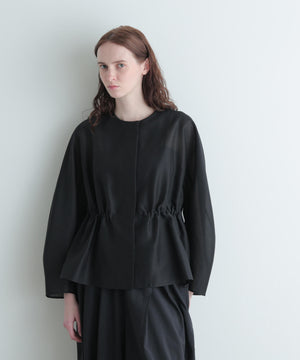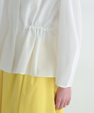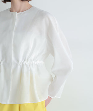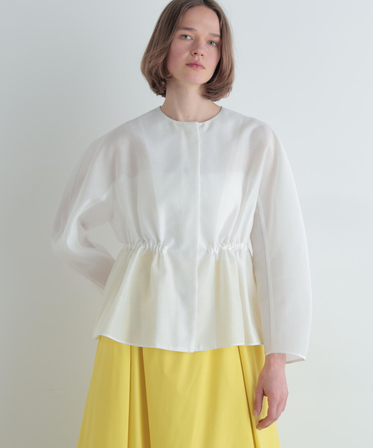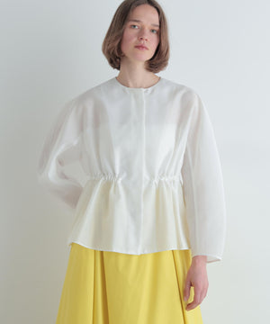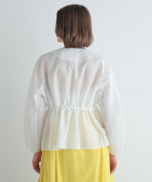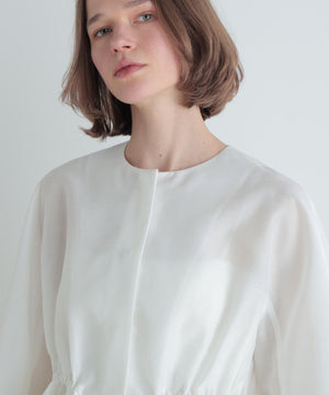 高級感漂うシアーオーガンジー素材を贅沢に使用し、素材の程よいハリが全体のシルエットを美しく際立たせる一枚。