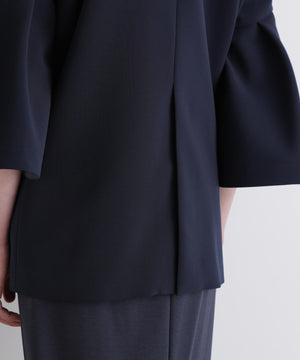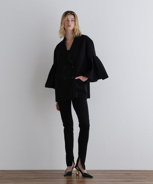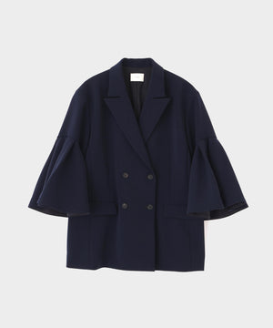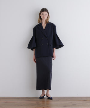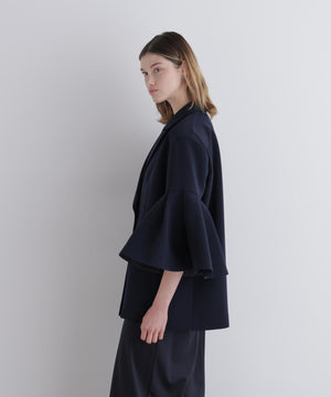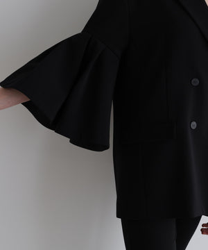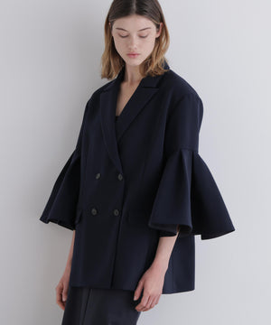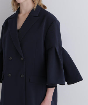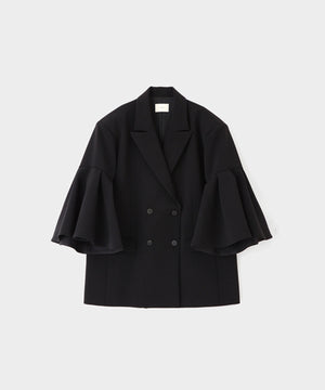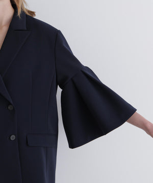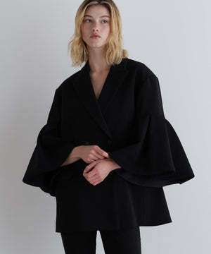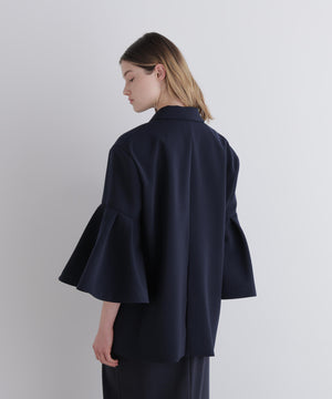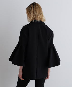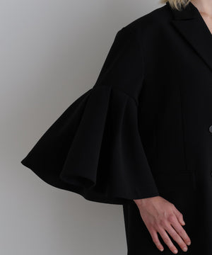ドラマティックなボリュームの短めのフレアー袖を組み合わせました。