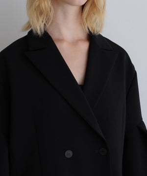 ベースはマスキュリンで端正なダブルのボクシーシルエットに、