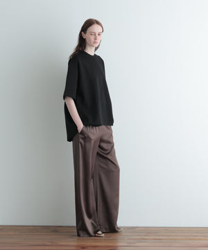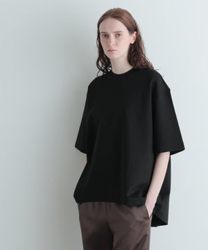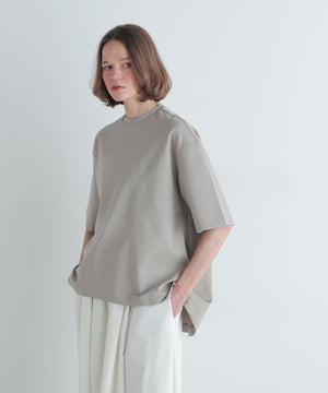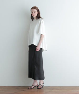 素材がしっかりとしたハリと肉感があるのでモード感があります。前後差のあるデザインで大人っぽい雰囲気です。