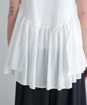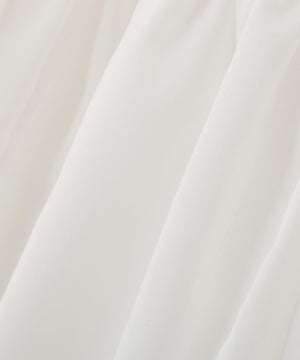 布帛のふんわりとしたボリュームが動くたびに美しいドレープを描き、シンプルなTシャツ感覚でありながら、一枚で主役になる華やかさを演出します。