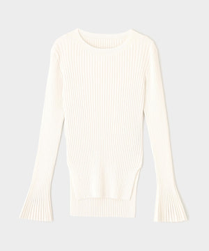 さらに、袖口に広がりを持たせたフレアスリーブが、動くたびに女性らしいニュアンスを添えます。