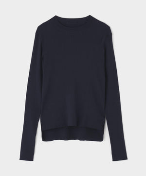 2×1リブ編みで仕立てた、クリーンで上品な印象の長袖ニットトップス。