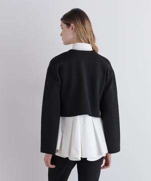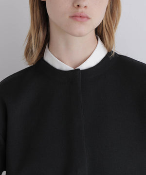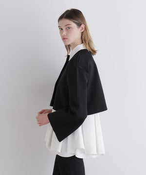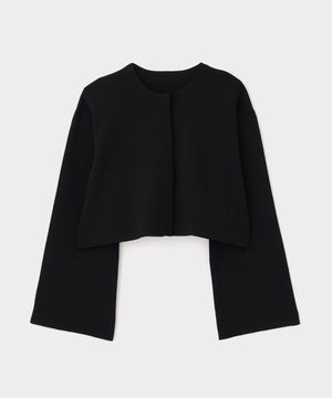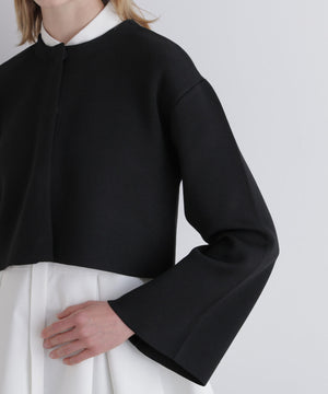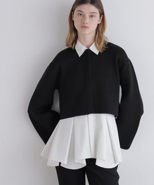 ボレロのように見頃から袖までがつながったオーバーサイズのショートニットトップスです。