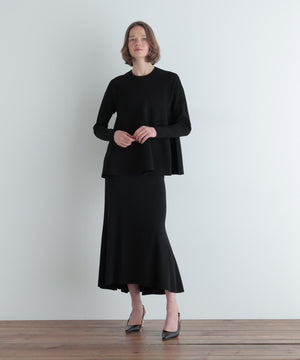 ニットならではの柔らかさに、構築的な設計を掛け合わせることで、甘さを抑えた大人のマーメイドシルエットを実現しました。
