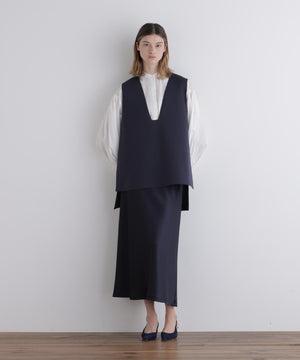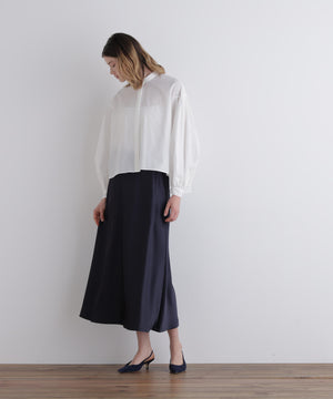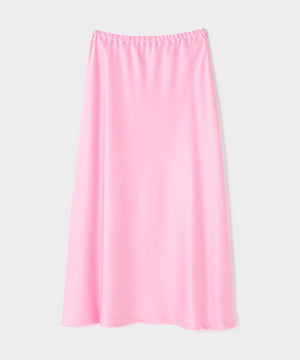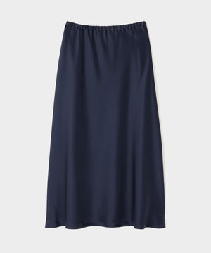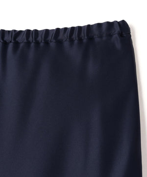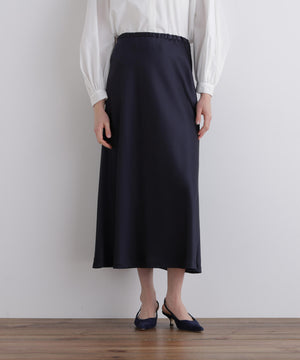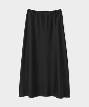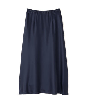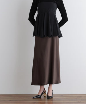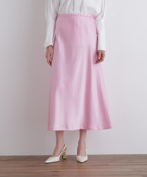裾にかけて緩やかに広がるナローシルエットのサテンスカート。