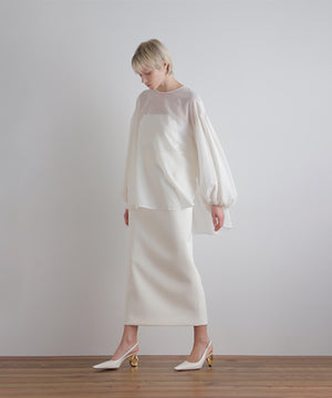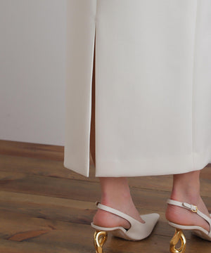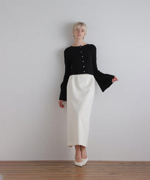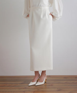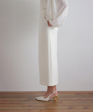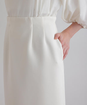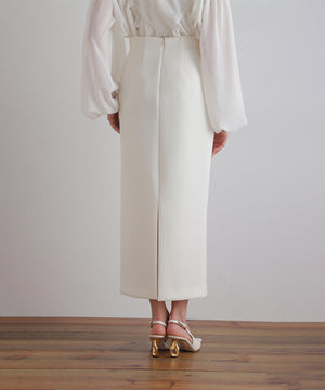 ウエストにダーツを取ってコルセットのような構築的なシルエットを作ることで、ウエストが美しく見えるようこだわったハイウエストスカート。