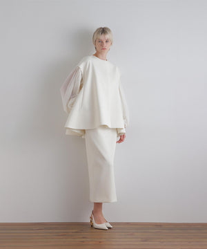 クチュール的でありながらイージーなカットソー素材で快適性も備えています。