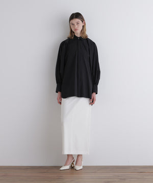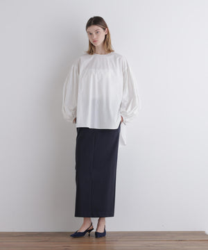カットソー素材を布帛仕立てで縫製することで、ジャージーとは思えない高見えする見栄え感と着心地の良さにこだわりました。