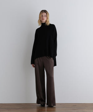 シンプル&モダンなワイドサテンパンツ。