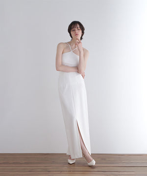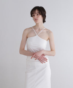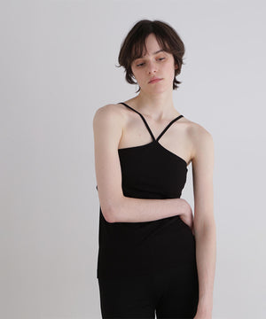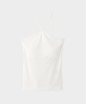 華奢なストラップでクロスしたホルターネックがポイントの万能キャミソール。
