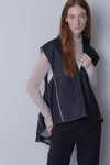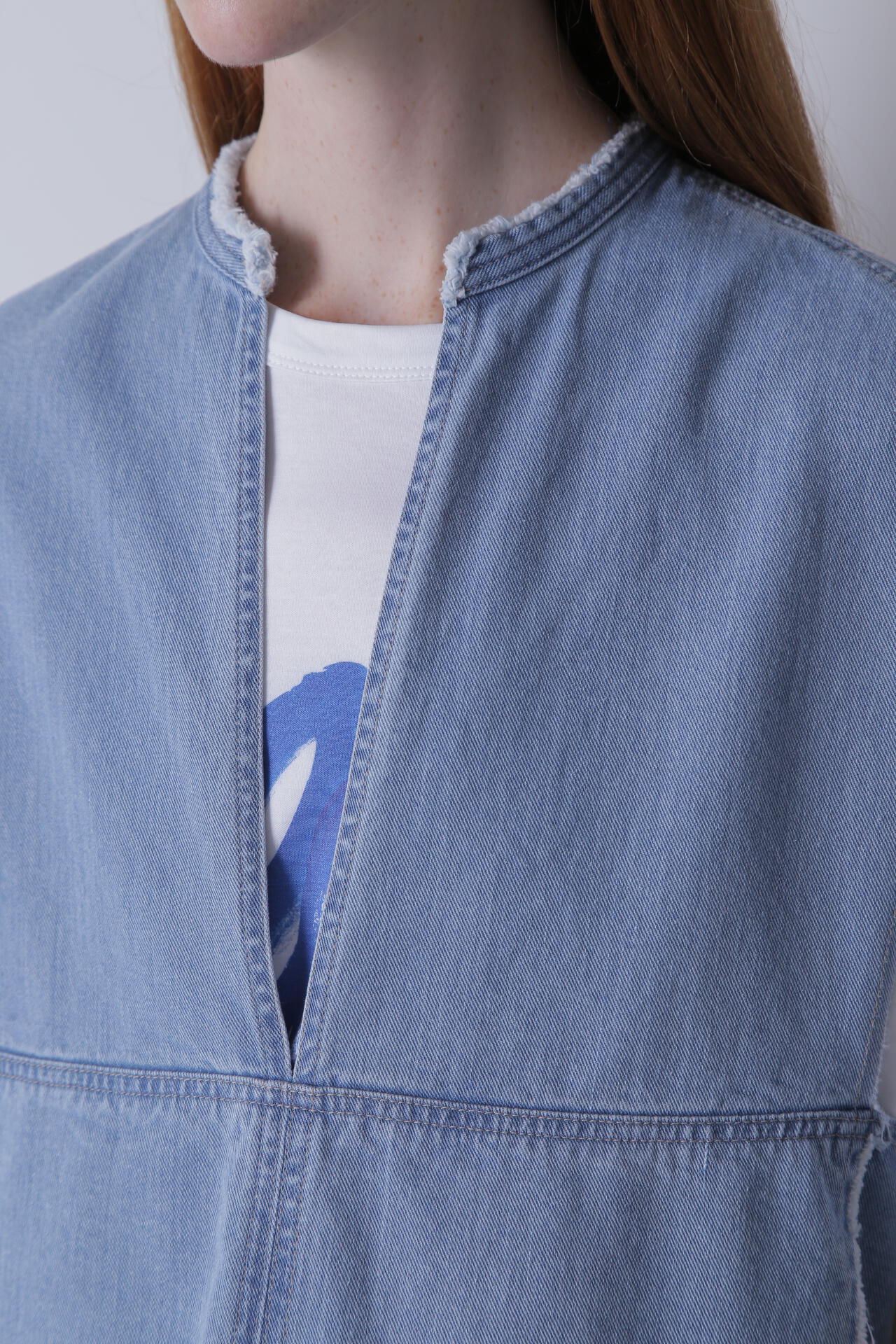 ところどころに裁ち切り始末を入れてストリートモード感ある仕上がりに。深い前スリットとコンパクトなスタンドカラーがクールでシャープな印象の1着です。