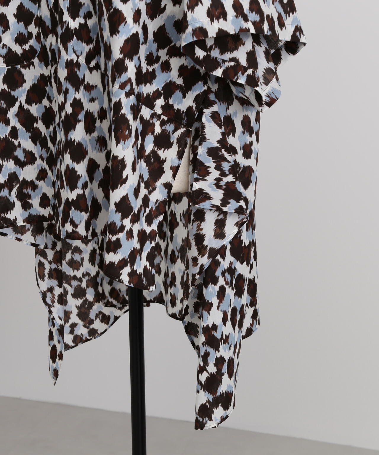 オーガンジーにオリジナルのレオパード風プリントした素材を使用しています。