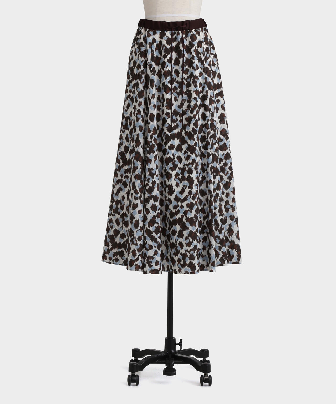 ドットとレオパードの中間イメージの柄はくどさがなくどなたでもスッキリ合わせていただけます。定番のイージータイプのスカートに乗せ、ウエストは総ゴム仕立てながらフロント部分にギャザーを寄せないことで見た目のイージーさを削ぎ落としてあります。