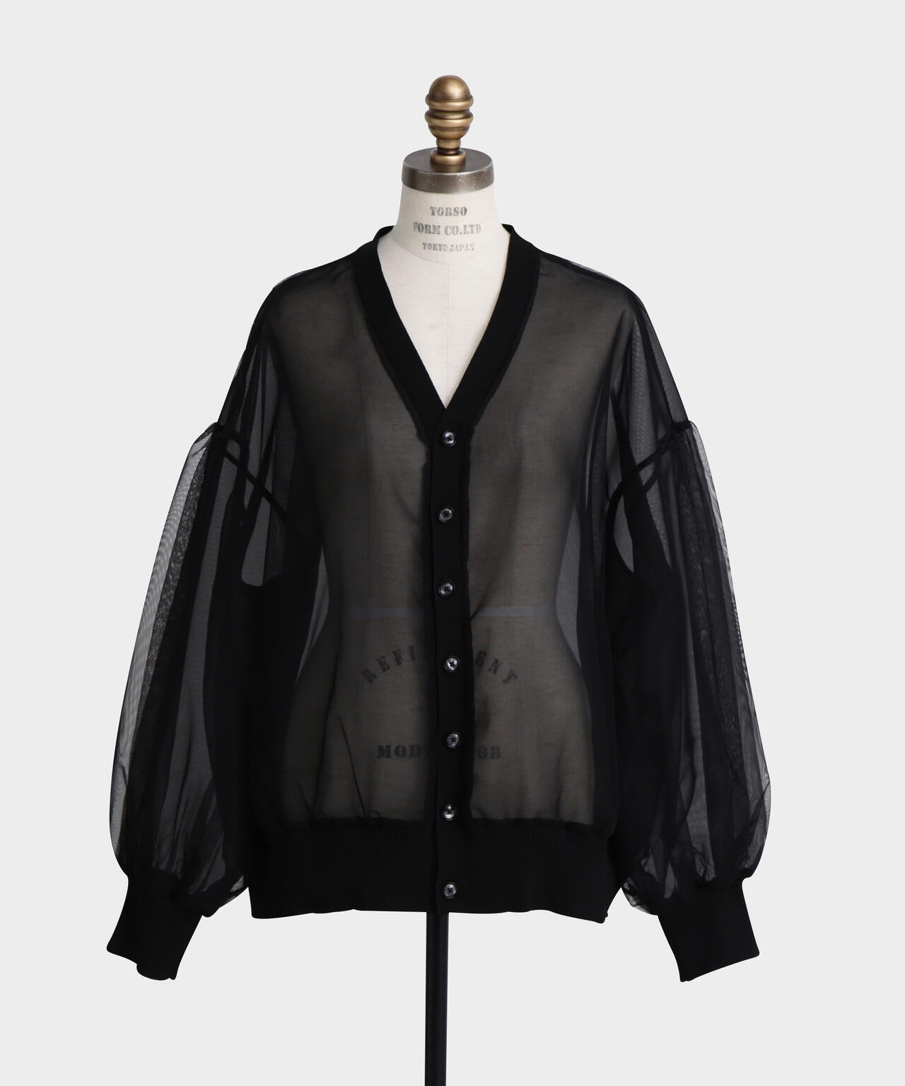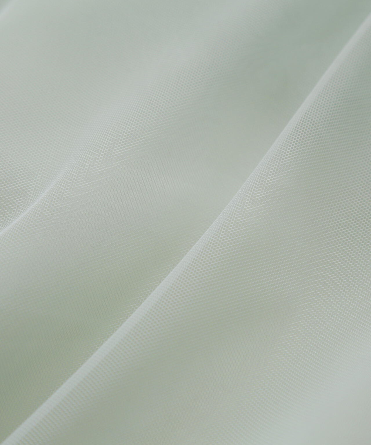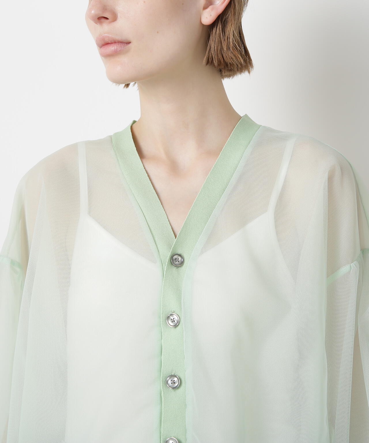 オーガンジーとチュールの二重仕立てで仕上げた華やかなカーディガン。内側のオーガンジーはゆったりとしたサイズ感でリラックス感を演出し、外側のチュールにはギャザーをふんだんに施し、たっぷりとしたボリューム感をプラス。二枚の素材が優雅に重なり合い生まれる陰影が立体的な表情を作り出し、モアレ(光の干渉による縞模様)を抑える工夫も施されています。軽やかな透け感と奥行きを楽しめる一枚です。