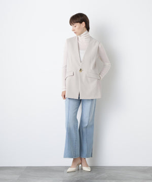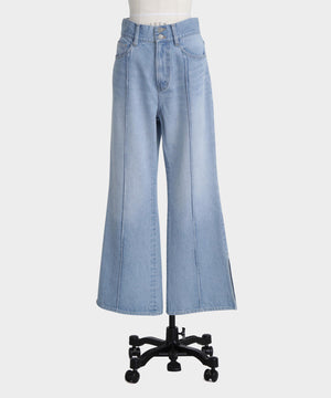 ナチュラルなフレアが美しいストレートシルエットのパンツ。ほんのり広がるラインがカジュアルすぎず、脚をまっすぐきれいに見せてくれます。サイドスリットがさりげなく縦ラインを強調し、スタイルアップ効果も。センターの折り目は、ピンタックを一度縫い留めた後、手作業でほどくというこだわりの手法によって、自然なプレスラインが残る仕上がりに。