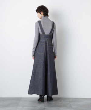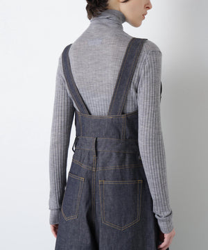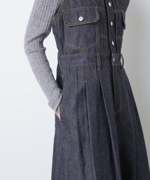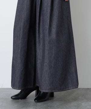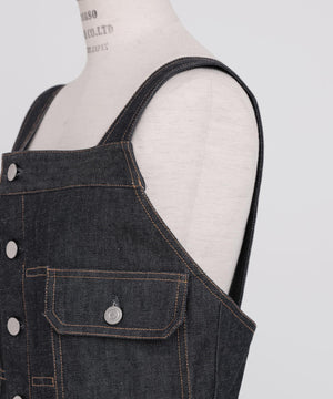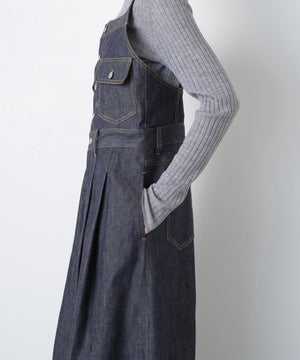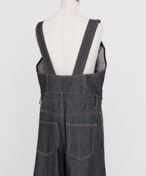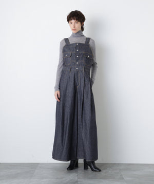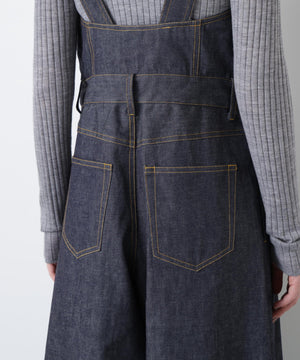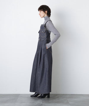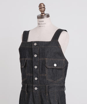 10ozの反応染めデニムを使用したコンビネゾンです。上身頃はコンパクトにまとめ、ヴィンテージの2ndタイプのディティールを取り入れることで華やかな印象をプラス。パンツ部分はスーパーワイドシルエットに仕上げ、上下のボリューム差でメリハリのあるドラマティックなスタイルを演出しています。ステッチはオフホワイトでクリーンに整え、インナーに細身のニットやカットソーを合わせたり、ゆったりジャケットを羽織ったスタイリングも楽しめる、着こなしの幅が広い一着です。