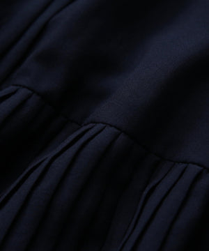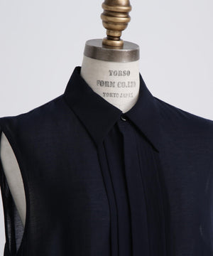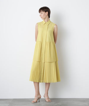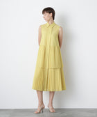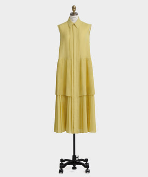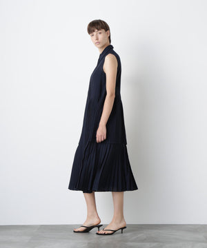 STUMBLYの定番である、大小異なる3種のプリーツを絶妙に組み合わせたエレガントなAラインワンピース。袖なしのノースリーブデザインにより、着用シーズンがさらに長くなりました。程よい透け感のある上質素材が、軽やかで立体的なフォルムを演出。ウエスト部分でストレートプリーツを少し持ち上げるパターン技術により、緩やかなAラインを形成。甘さ控えめで洗練された印象を持ち、子供っぽくならない大人の美しさを追求しています。