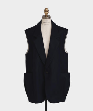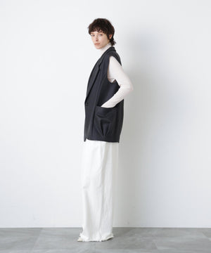 テーラードジャケット顔のバルーンシルエットジレ。パネルラインとポケットディティールを巧みに組み合わせることで、立体的でふんわりとしたシルエットを実現しました。シンプルでクリーンな印象ながらも、ダーツやボックスタックを駆使した独自のパターン設計により、着用するだけでバランスの良い立体感を演出。洗練されたデザインと構築的なシルエットが融合した、STUMBLYならではの唯一無二のジレアイテムです。