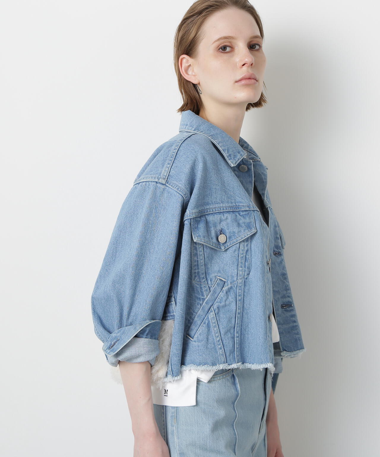 3rdタイプのデニムジャケットをベースに、シープ調フェイクファーをアクセントに添えた、ここでしか出会えない新しいデニムジャケット。クロップド丈に仕上げ、リメイク風のポケット切り替えやカットオフ裾でラフな表情をプラス。取り外し可能なファーパーツは華やかさを加え、外せばシンプルで完成度の高いデザインに変わります。オールシーズン活躍する万能な一着です。
