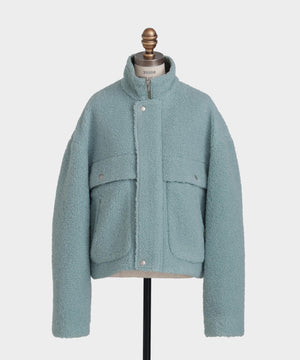 存在感のあるビッグシルエットが魅力のボアブルゾン。90年代を思わせるデザインをベースに、ドロップショルダーや胸元のファスナー付きパッチポケットなど、機能的で遊び心あるディテールを盛り込みました。ドットボタンやメタルファスナーなど、多彩な金属パーツをアクセントに使用することで、クラシックとモードが融合した独特の雰囲気を演出。懐かしさと新しさが共存する、STUMBLYならではのここでしか出会えない一着です。