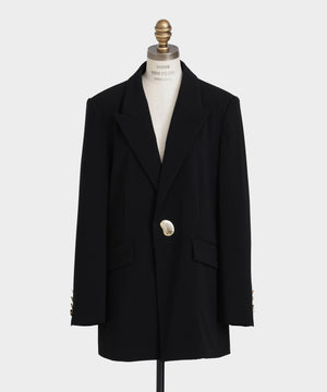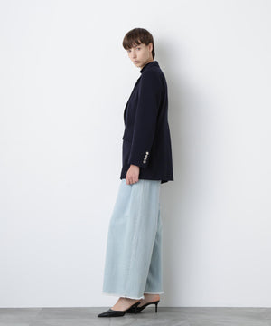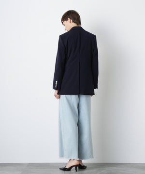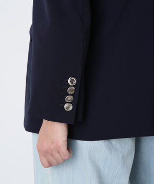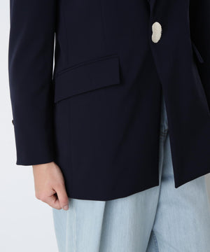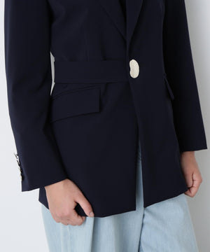 立体感としなやかさを兼ね備えたストレッチ素材で仕立てたベルテッドテーラードジャケット。発色の美しい二重織素材が上品なムードを引き立てます。印象的なのは、職人の手仕事を思わせるビーンズ型メタルボタン。存在感のある艶めきが、クラシックな中に華やかさを添えます。ウエスト内側の飾りベルトは、センターベントからのぞかせることでナチュラルにウエストマークが叶うモードなアクセントに。同シリーズのパンツとのセットアップも可能です。
