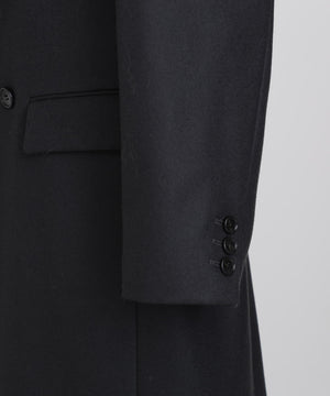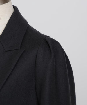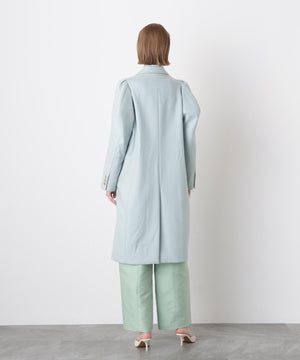 クラシックな雰囲気を纏うダブルブレストのチェスターコート。袖の切り替えによって肩の後ろ側に角のような膨らみを生み出し、構築的でニュアンスのあるシルエットを実現。クラシックモードな印象を備えた、新しい表情のチェスターコートに仕上げています。素材には、上質なウール100%の二重織メルトンを使用し、丁寧に加工することで微光沢感を演出。シーズンのカラーパレットに合わせて、オリジナルのミントグリーンも取り入れ、着こなしに鮮やかさと上品さを添える一着です。