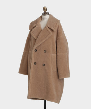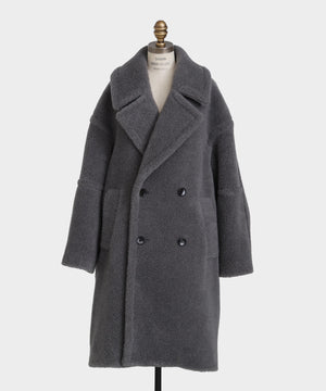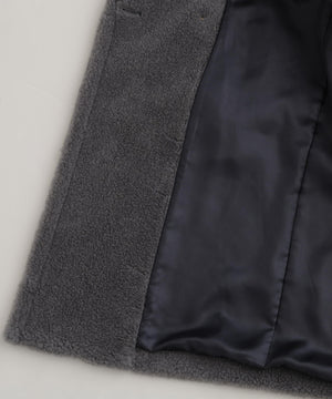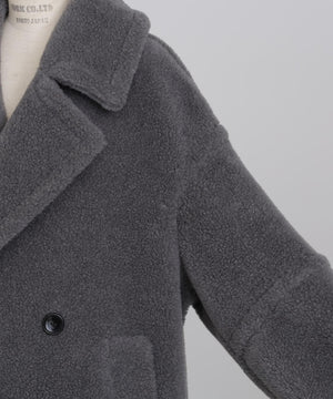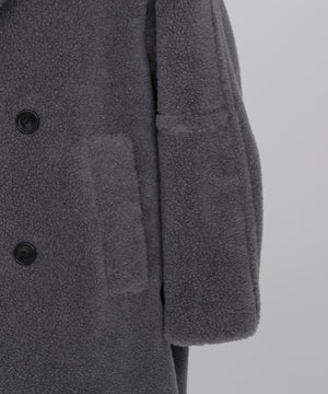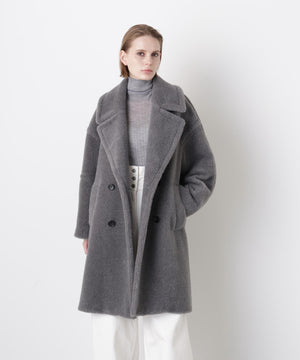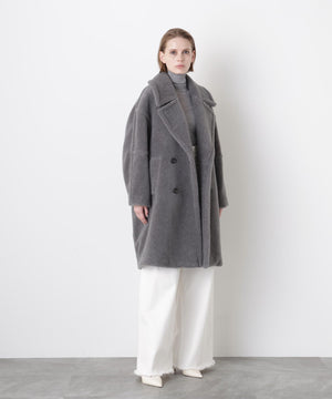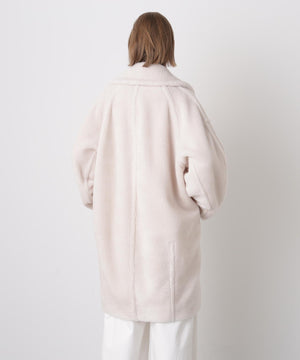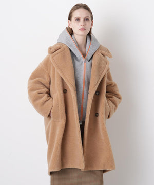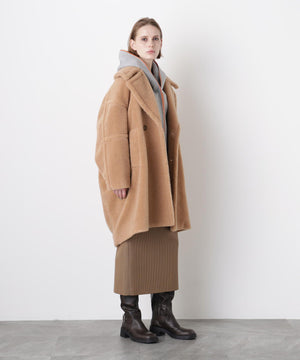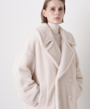 立体感と存在感が魅力のビッグシルエットショートピーコート。STUMBLYのシグネチャーアイテムをさらにアップデート。ダーツやタックを駆使した独特の前振り袖や背中のコクーンシルエットなど立体的なフォルムはそのままに、着丈をやや伸ばしてミドル丈として着やすく改良。ボア素材はオフホワイトとキャメルベージュにECOPEL社のウール混ボアを採用し、柔らかく暖かい質感をキープ。クラシックさとリラクシーさが共存する、日常のスタイリングに華やかさを添える一着です。