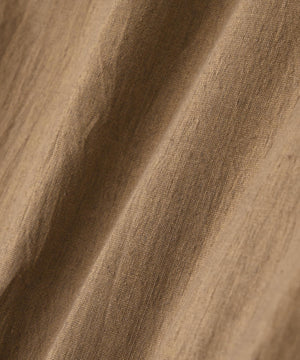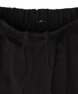 インドで手紡ぎ・手織りされたコットンシルクのカディを使用。シルクは優れた吸湿性・保温性・通気性を備え、夏は涼しく、冬は暖かい素材として知られています。そこにコットンを織り込むことで、生地にほどよいコシが生まれ、やわらかな温もりと上品な光沢が調和しています。こちらのイージーパンツはまるで心地よいステテコを穿いているかのようなリラックス感があり、コットンシルクのカディ素材の風合いとも心地よく調和します。