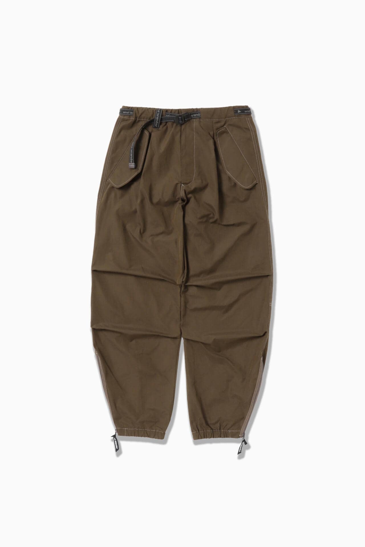 ミリタリーパンツからインスピレーションを得た、裾にファスナーの付いたパンツです。