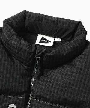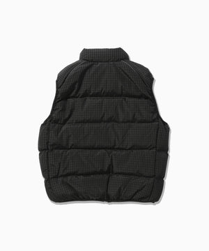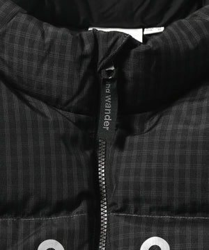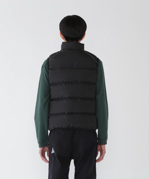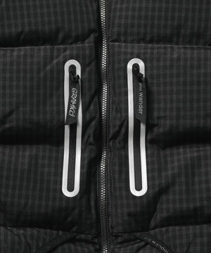 撥水加工を施した、ウール混生地のダウンベストです。胸に圧着のリフレクターファスナーポケットがあります。部分的にリフレクターステッチを使用して、夜間での視認性があります。