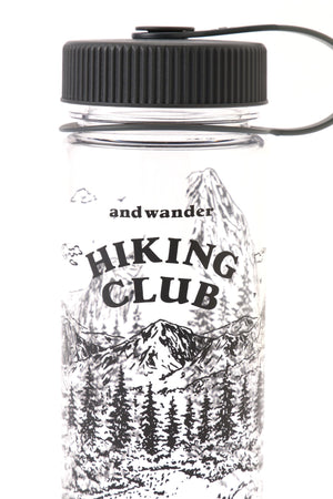 HIKING CLUBのイラストをプリントしたボトル。軽量ながら耐久性に優れたBPAフリーのクリアボトルです。口径が50mmと広口なので、氷や飲み物、行動食を入れるのに最適で洗浄も容易に行えます。容量500ml、対応温度-20℃から90℃