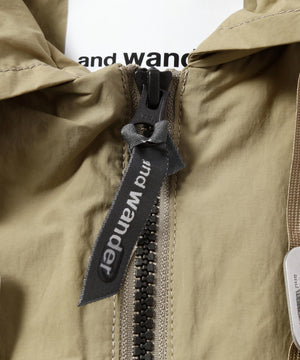 カジュアルなフロント開きの裏地付きのジャケットです。縦20デニール、横45デニールのつや消しのナイロン糸を使用し、耐久性のある撥水加工を施しています。