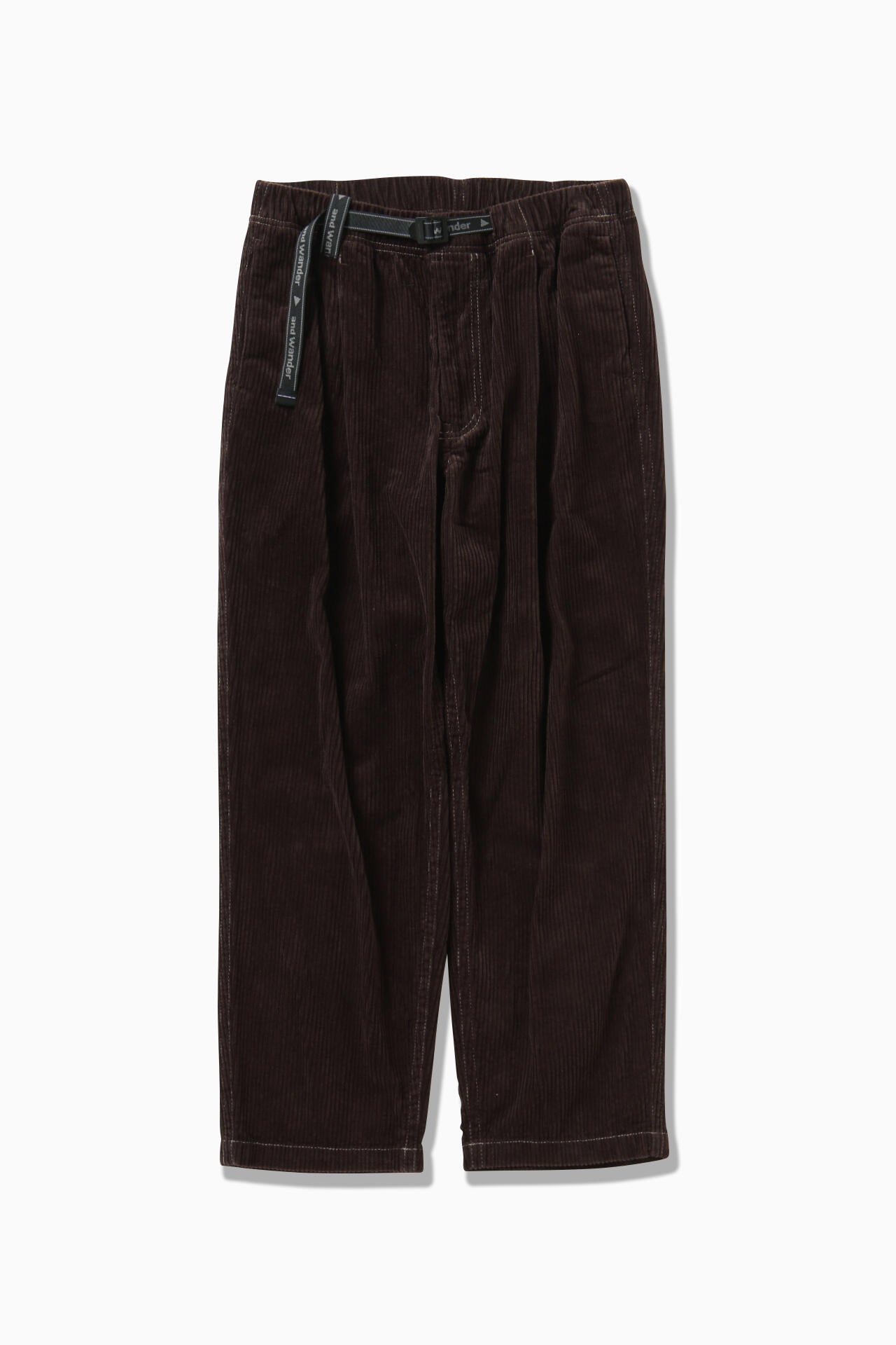綿100%の太い畝のコーデュロイパンツです。ゆとりのあるヒップ周りとテーパードシルエットが特徴です。