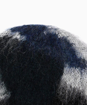 5Gのダブルジャガードで、アクリル、ナイロン、ウール、モヘヤの混紡糸を、オリジナルのカモフラ柄に編み立てています。両面起毛加工により風合いよく仕上げました。