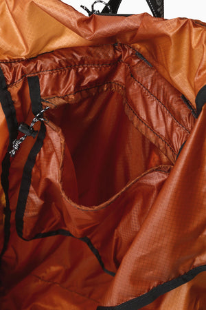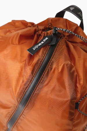 INVISTA社の30D CORDURAナイロン素材を使用しており、摩耗、引き裂き、すり切れに強く、シリコンコーティングによる優れた撥水性と1000mm以上の耐水性能をもちます。旅行などに便利なパッカブル仕様のデイパックで、斜めのファスナーで容易に荷物の出し入れができます。内側のポケットに本体を収納することができます。実測容量18L