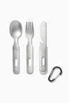 ナイフのスリーブの中にスプーンとフォークを収納することができます。