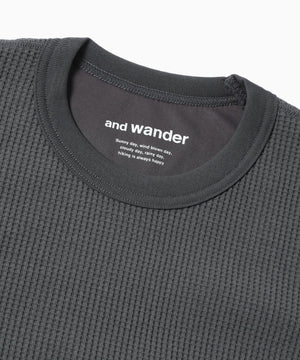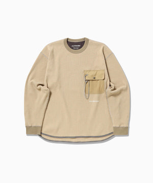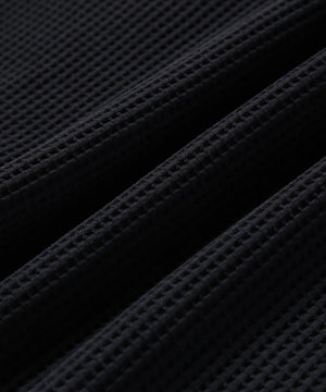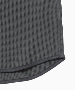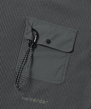 ポリエステルのワッフル生地は軽量で吸水速乾性があり、キックバック性にも優れています。カラビナ付きのポケットが付いています。