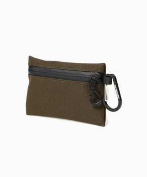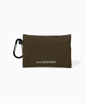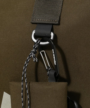 経糸にポリエステル、緯糸にはコットンとナイロンの混紡糸を打ち込み、裏面にはTPUコーティングを施しています。耐水圧10000mmの防水性能を持ちながら、コットンの混率が半分ほどあるので、色や素材感の経年変化を楽しむことができるハイブリッド素材です。カラビナ付きのカードケースが付属しています。実測容量28L