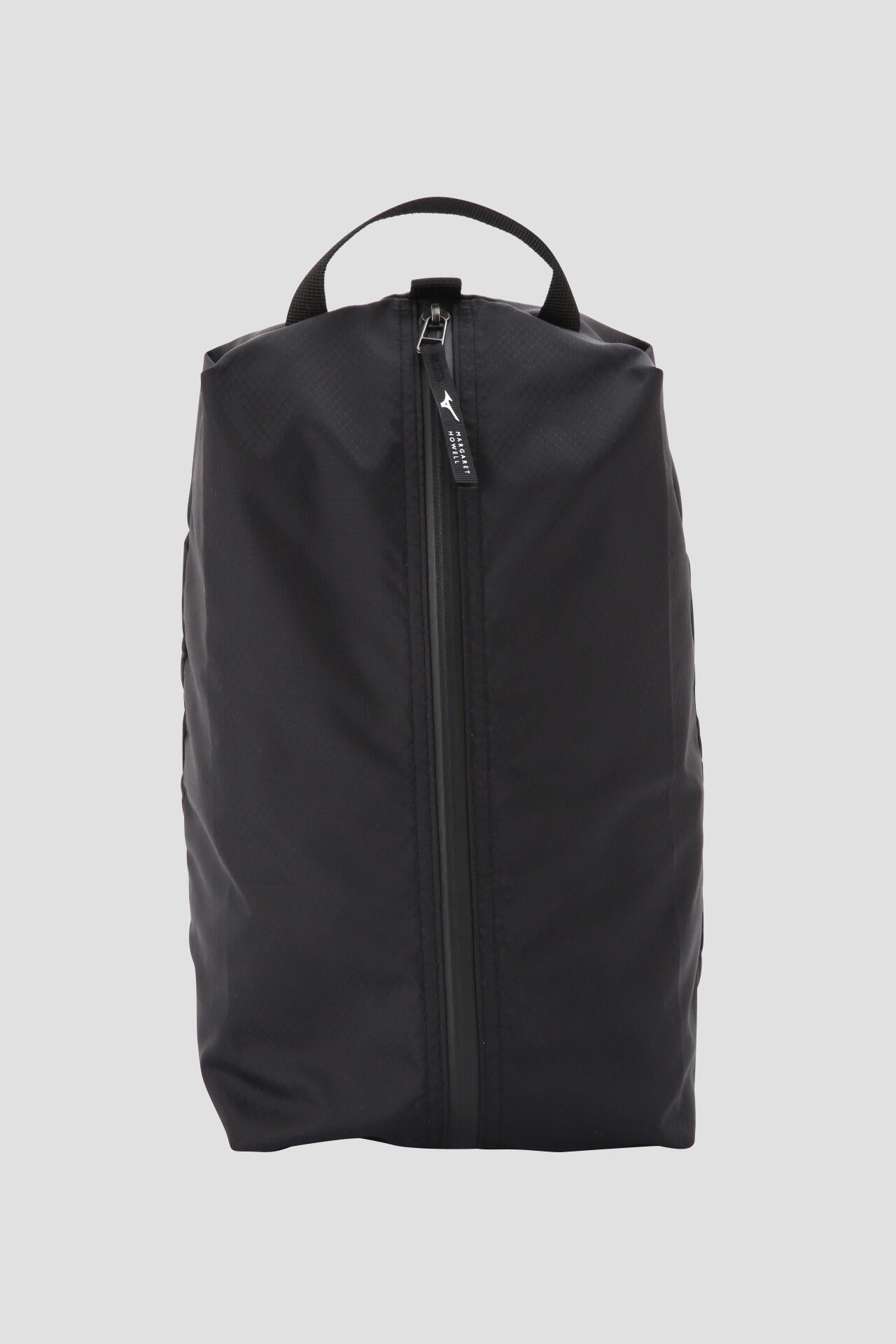 ミズノの高い技術力とマーガレット・ハウエルの感性を融合させたコレクション「MIZUNO FOR MARGARET HOWELL」。PFASフリーの強撥水加工を施したダイヤモンドリップストップを使用。軽量で引き裂きになどに強く、ミズノ独自の合格基準を上回る強度の素材。スイミング用ポーチから着想を得たデザイン。シューズ入れとして使いやすいサイズに設計し、その他様々な用途で便利なウォッシュバッグ。