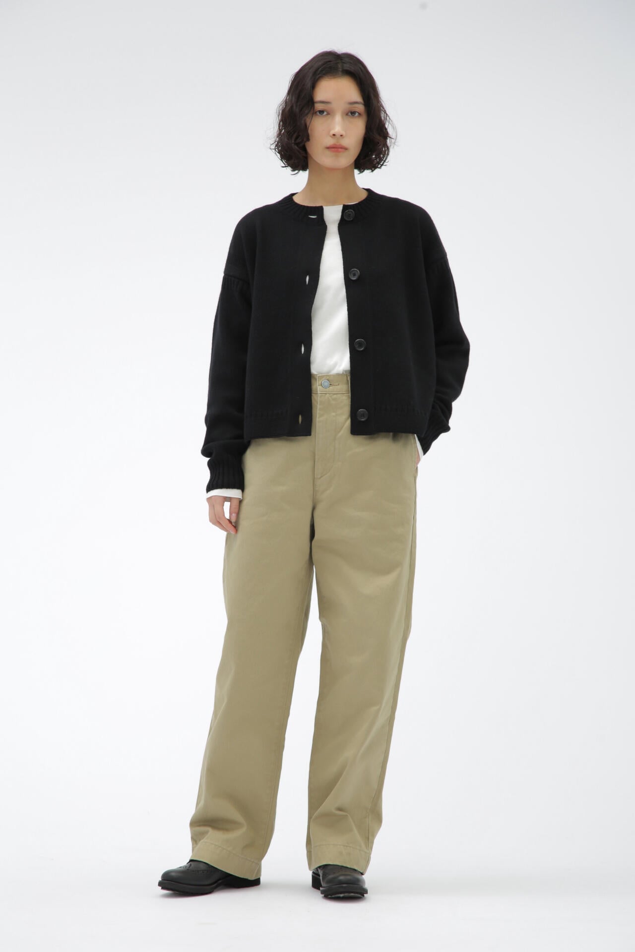 EDWIN FOR MARGARET HOWELLのコットン素材のチノトラウザーズ。製品でバイオウォッシュにかけることで生まれる軽いアタリや、馴染んだような風合いがポイント。いつの時代も支持されるオーセンティックさを持ったストレートのデザインで、使い込むほどに味わいが増す一着。